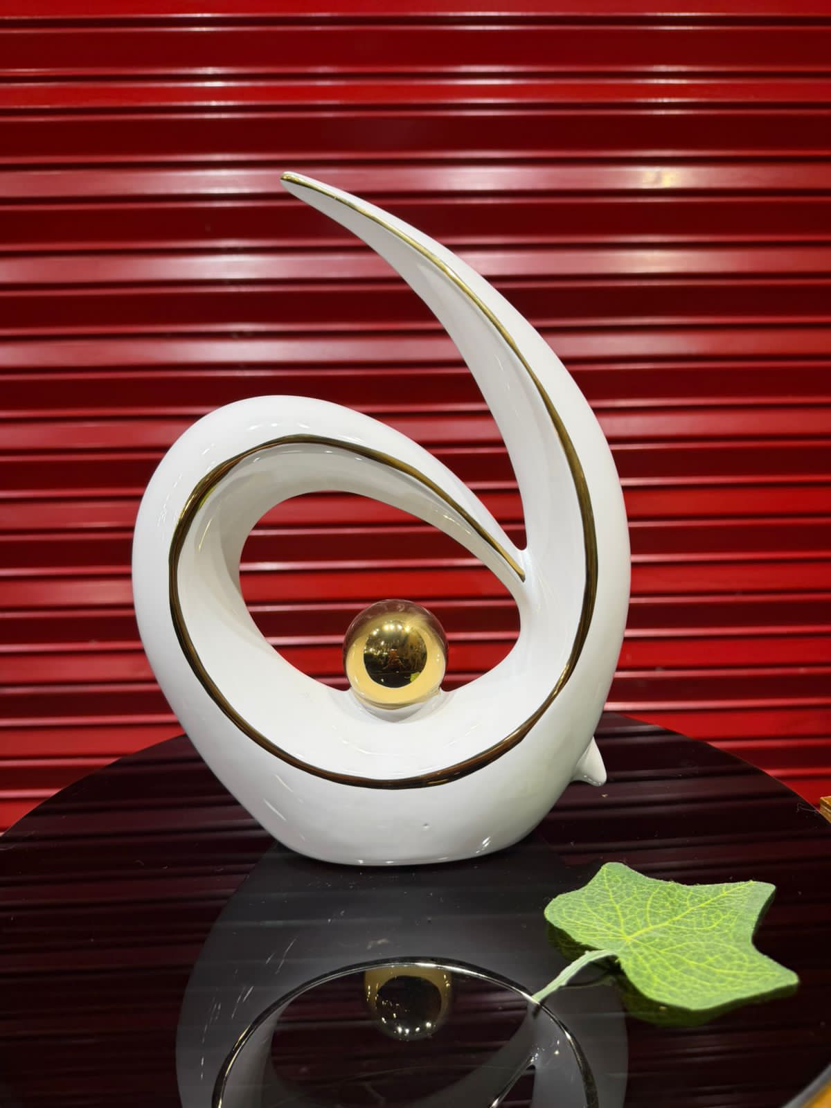 Perfect for decorating coffee tables, shelves, or TV consoles. Its white and gold glossy finish makes it a beautiful statement piece for any modern space.